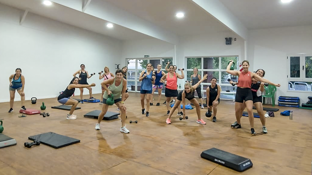 Las clases se desarrollan en el SUM y ofrecen diferentes horarios para adaptarse a las rutinas diarias de cada participante, promoviendo hábitos saludables y un estilo de vida activo.